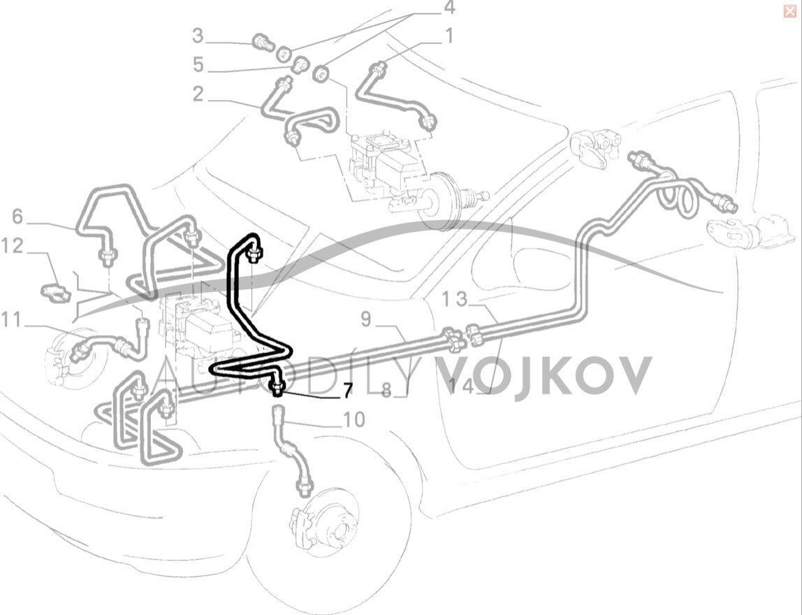brzdová rúrka od jednotky ABS k ľavému kolesu