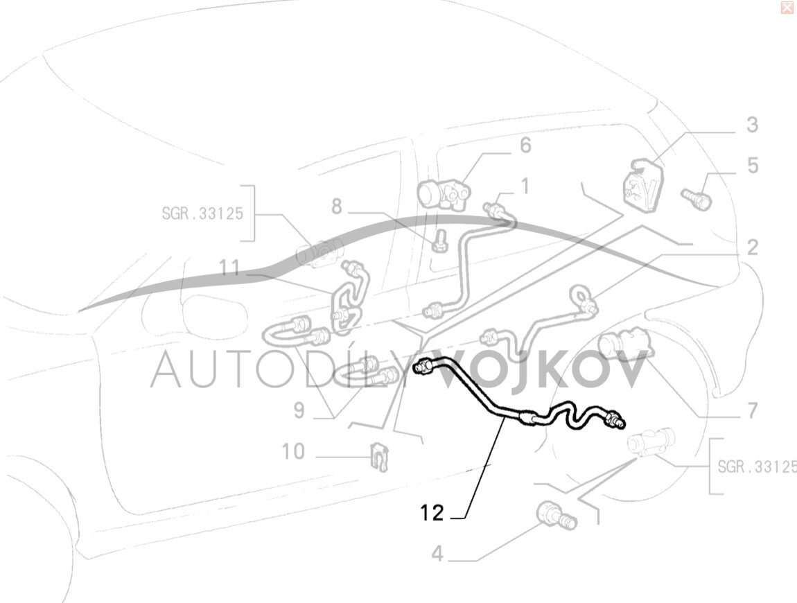 trubka je umiestnená na zadnom ramene a končí v brzdovom valci